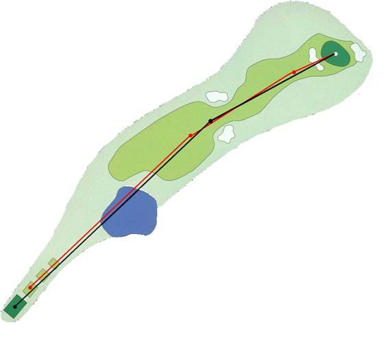 ▼ OUT 5番 (赤線=月いちゴルファー、黒線=プロ)